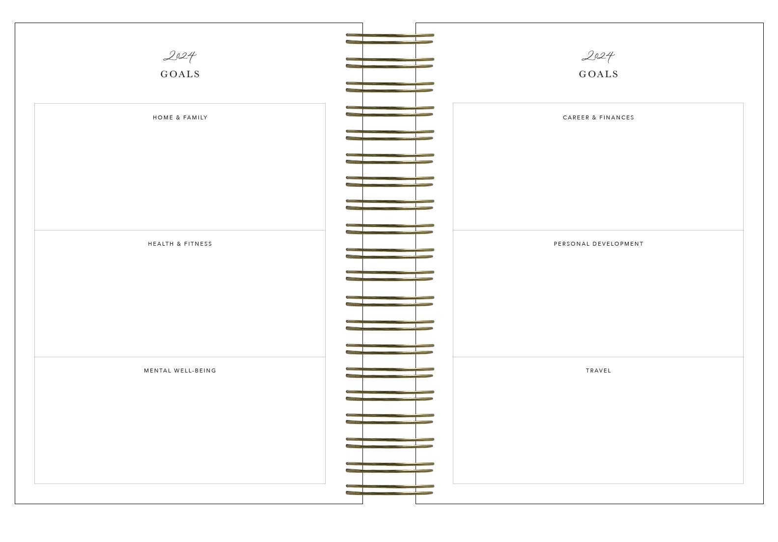 • Goals pages at the beginning and at the end of the planner