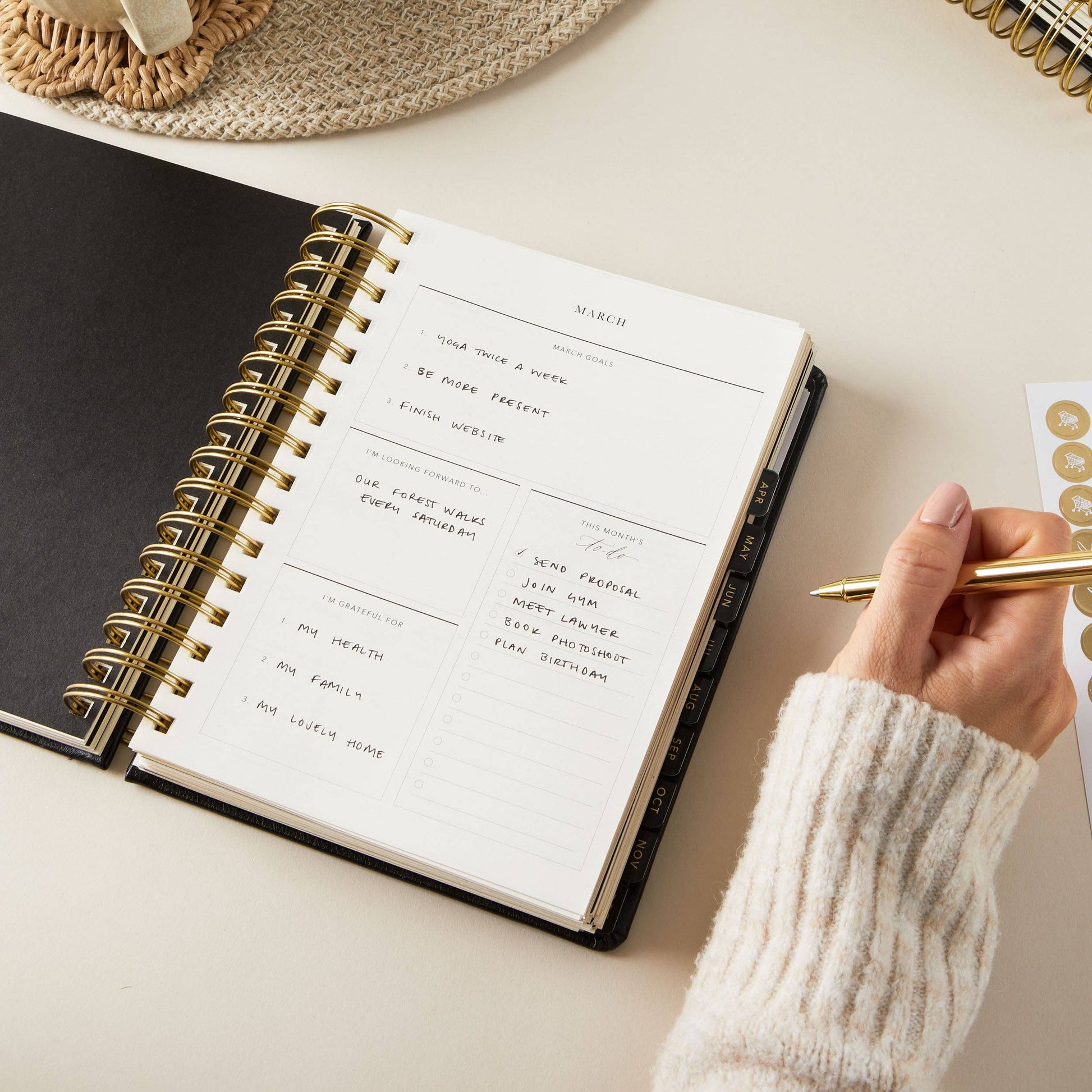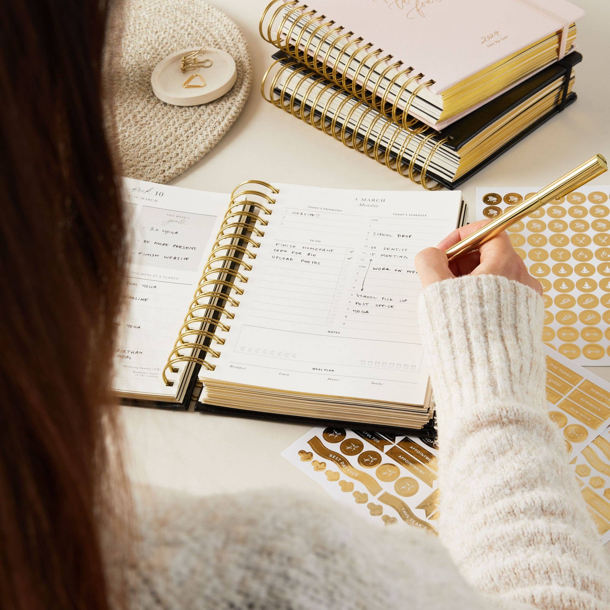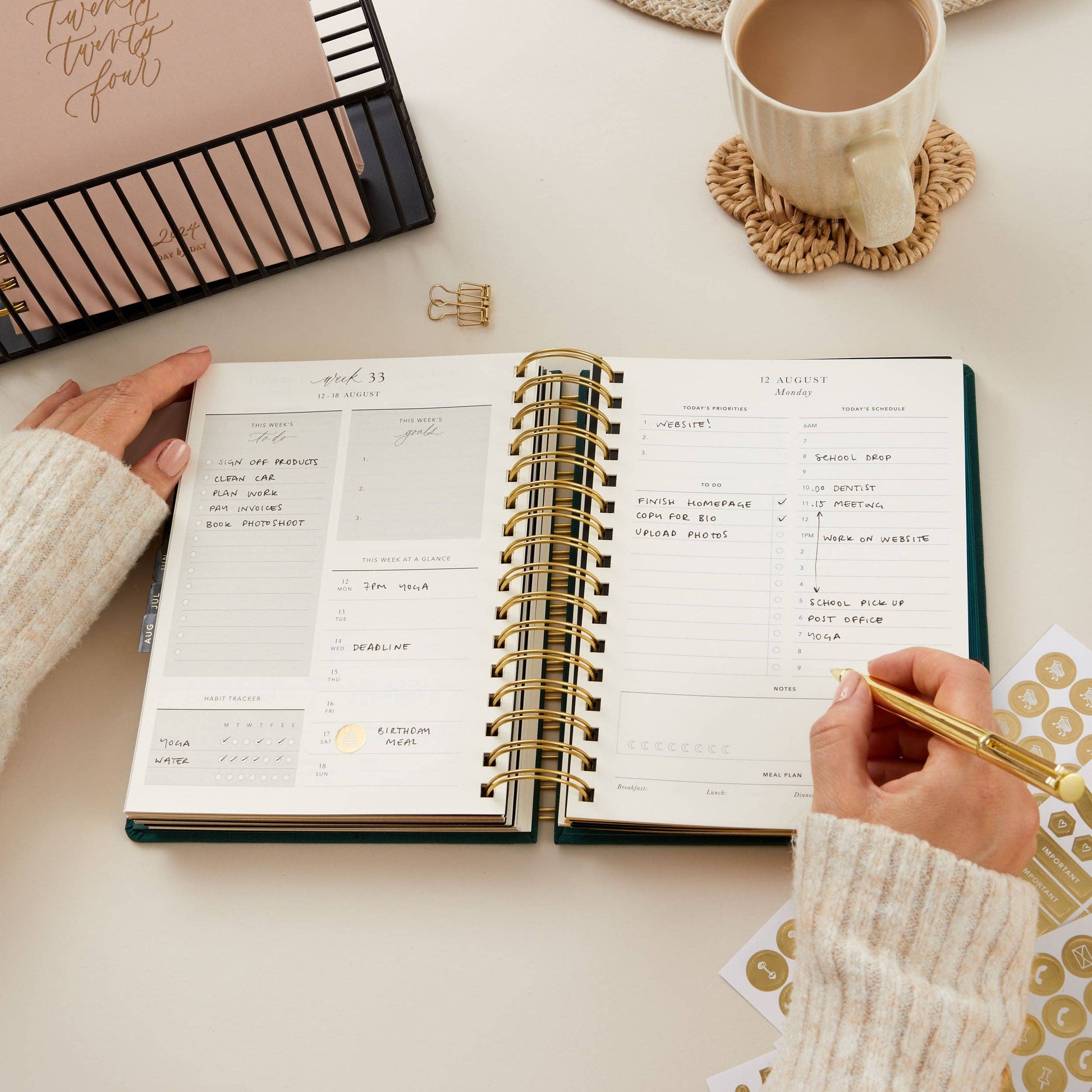 The 'day-to-page' view allows you to have all your plans for the day in one place (daily priorities, to-do lists and time blocking, as well as a section for your meal plan and to keep track of your sleep and water intake).