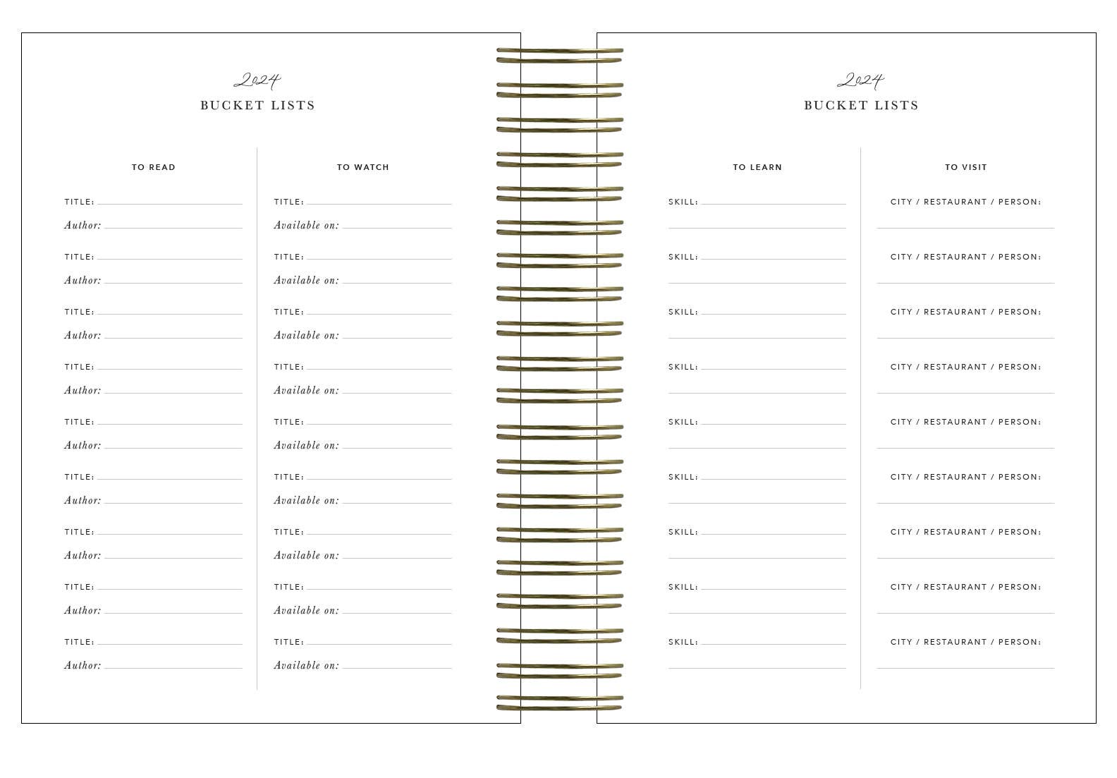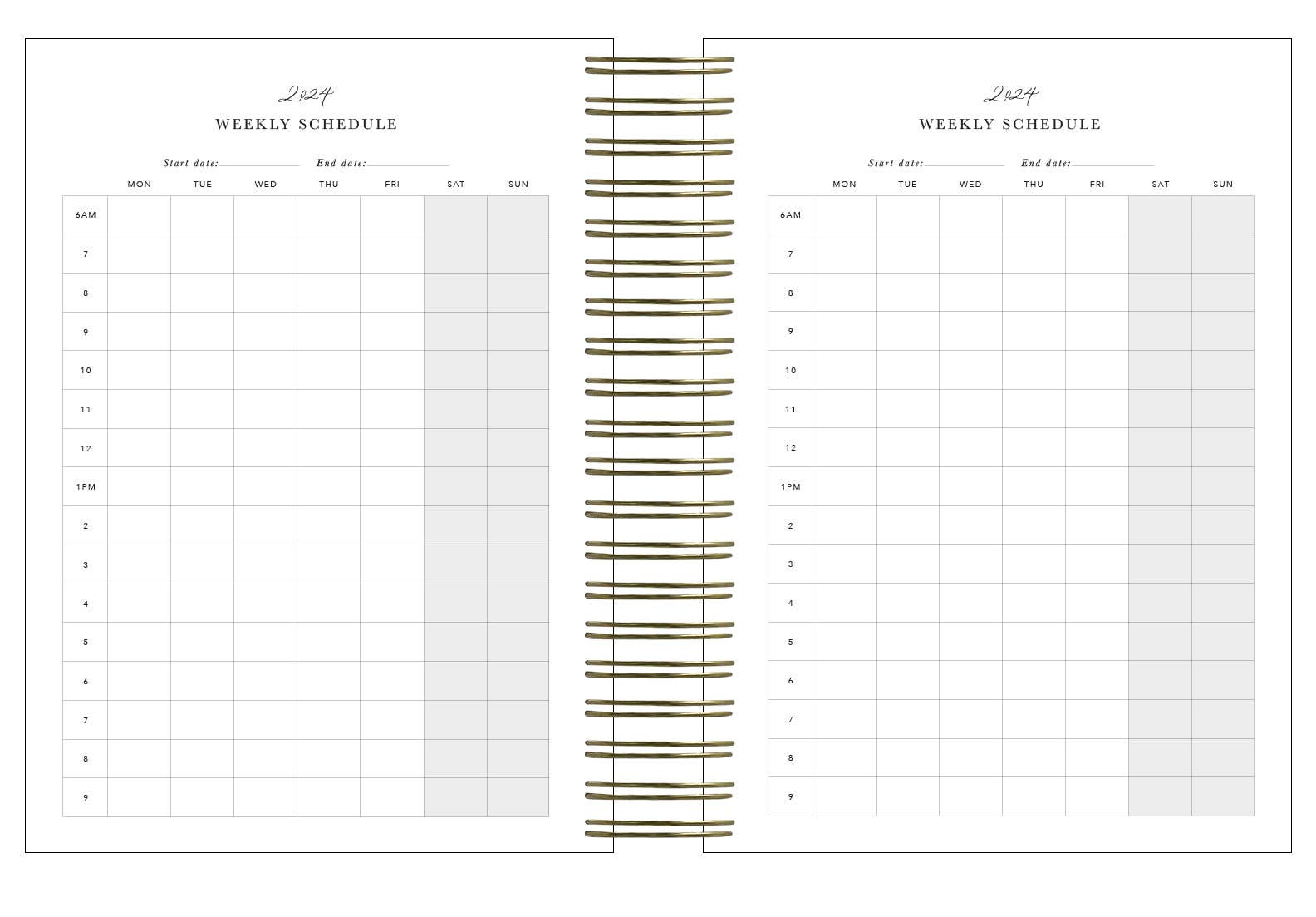 • Weekly overview pages (for every week)