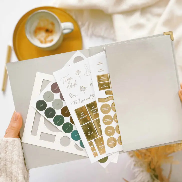 NEW - Luxury Wedding Planner Book - Grey and Gold Foil with Gilded Edges